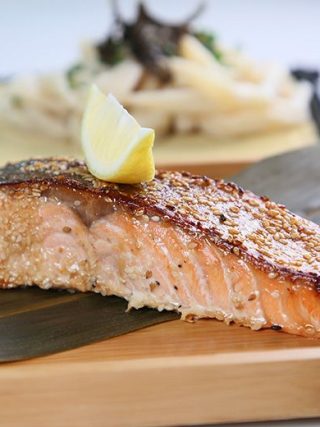 芝麻照燒汁慢煮三文魚柳配手製麵