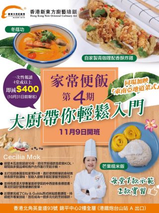 一堂課 實習製作2道明星菜式>提倡環保,學員上課請自備食物盒及環保袋。 >購買課程後, 請到以下連結填寫學生資料(舊生不需填寫) >> 填寫學生資料