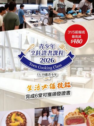 $4,580.0 – $8,280.0選擇規格2026【生活必備技能】-青少年廚藝訓練證書課程
