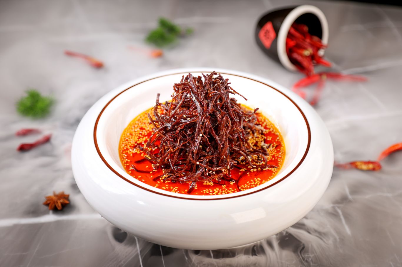 燈影牛肉絲:四川達州著名的特色小吃,因肉片薄而寬、可以透過燈影、有民間皮影戲之效果而得名,已有100多年曆史。 燈影牛肉是由牛後腿腱子肉切片後,經醃、晾、烘、蒸、炸、炒等工序製作而成。 麻辣香甜,深受人們喜愛。