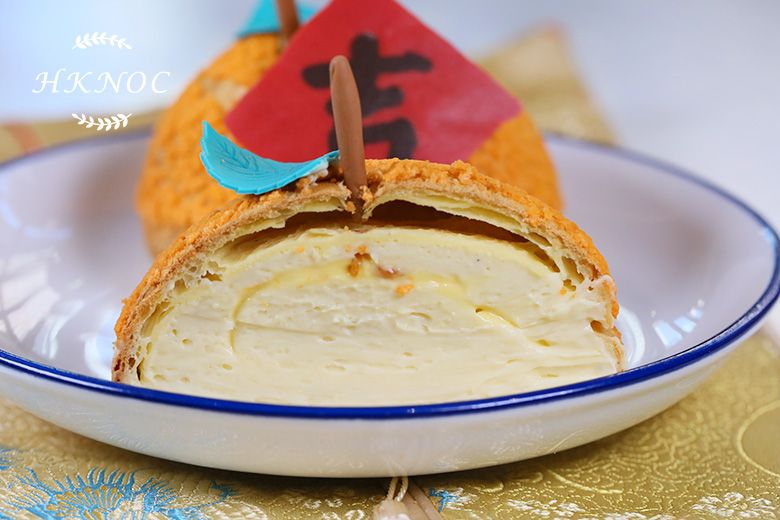 為迎合農曆新年,特別設計了大吉形狀,外脆內軟配以香草外交官奶油餡及柑橘醬帶酸中和油膩感