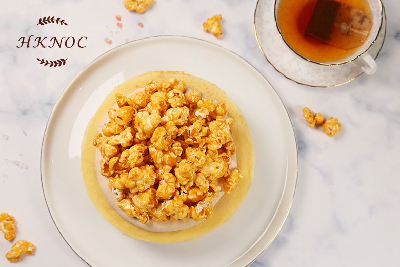 班戟皮製作、海鹽焦糖爆谷、忌廉內餡及伯爵茶鏡面製作。