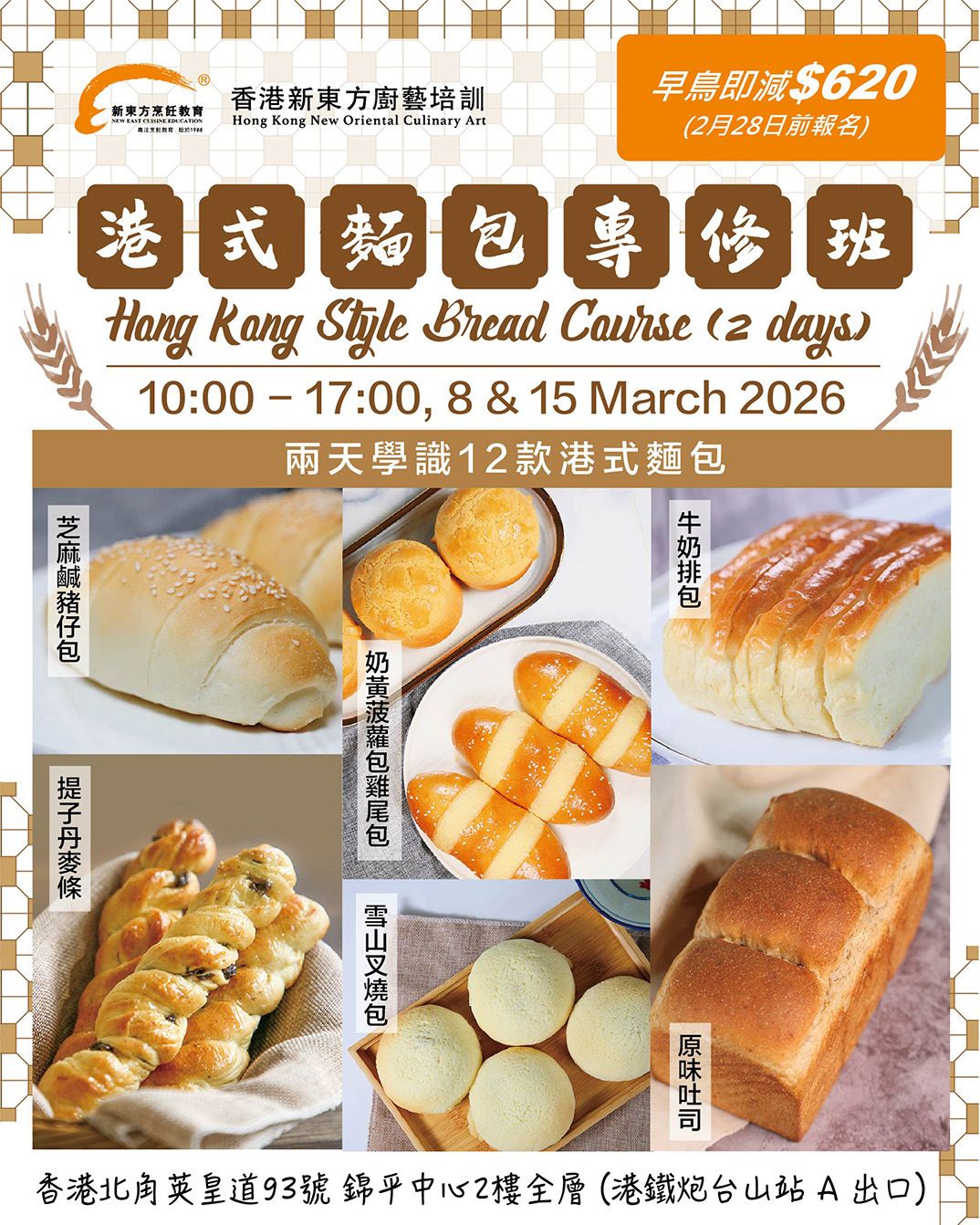 傳統風味與創新工藝的結合,正是港式麵包的獨特魅力。本課程專為烘焙愛好者及職業入行者設計,以兩天密集實訓,系統傳授12款經典與創意麵包的完整技法。從經典基礎甜麵團製作,到傳統造型及餡料調製,課程涵蓋經典麵團製作方法,助你快速掌握茶餐廳與烘焙店熱賣產品的製作精髓。快來一同與資深導師學習如何製作港式風美食啦!