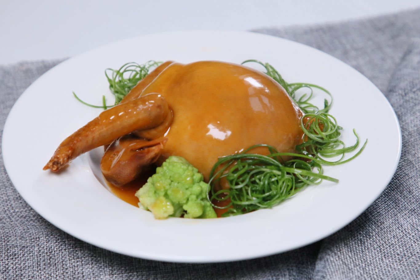仙鶴神針:是一道經典手工粵菜,精髓在於「以鴿為囊,釀入翅針」,將鴿拆骨後填入以頂湯煨過的高級魚翅,經燉煮至鴿肉軟腍、湯汁鮮濃。
