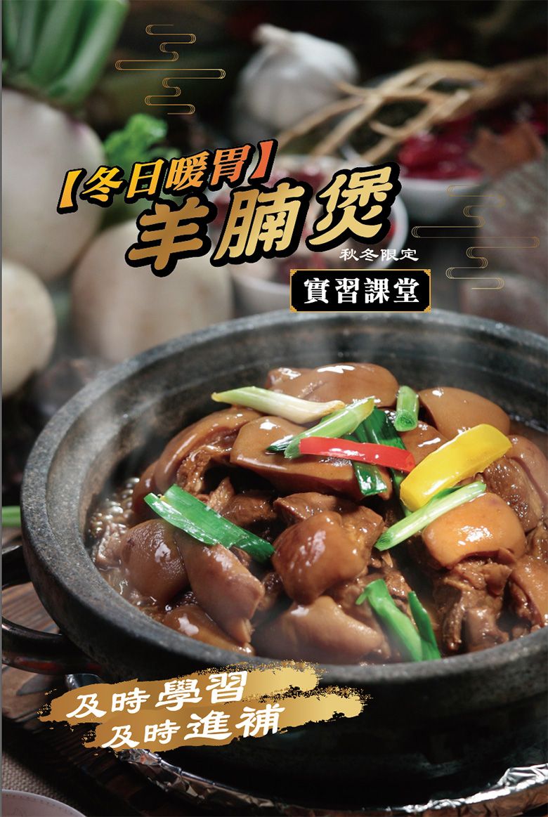 秋冬是人體溫補的最好季節,而羊肉有暖胃,補肝益胃的滋補功效,廣式羊腩煲選用本地放養黑山羊羊腩,肉質肥瘦相間,長時間燜制後,軟嫩入味,芳香濃郁,不腥不膻。 快來一起率先製作2024秘製羊腩煲吧! 學費1480; 會員價1380 或扣 2堂