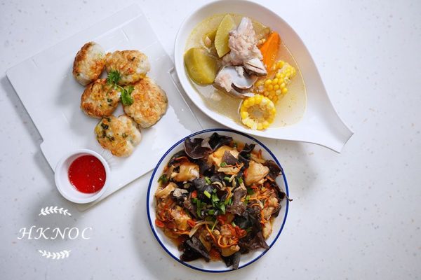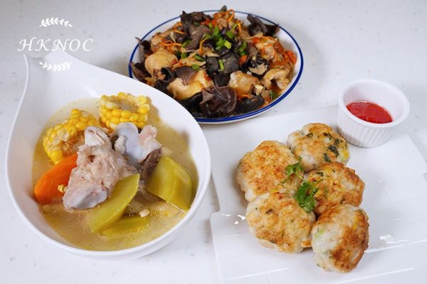 家常菜(1)-青紅蘿蔔粟米豬骨湯 (示範) 、蟲草花杞子雲耳蒸雞 & 香煎粟米墨魚餅