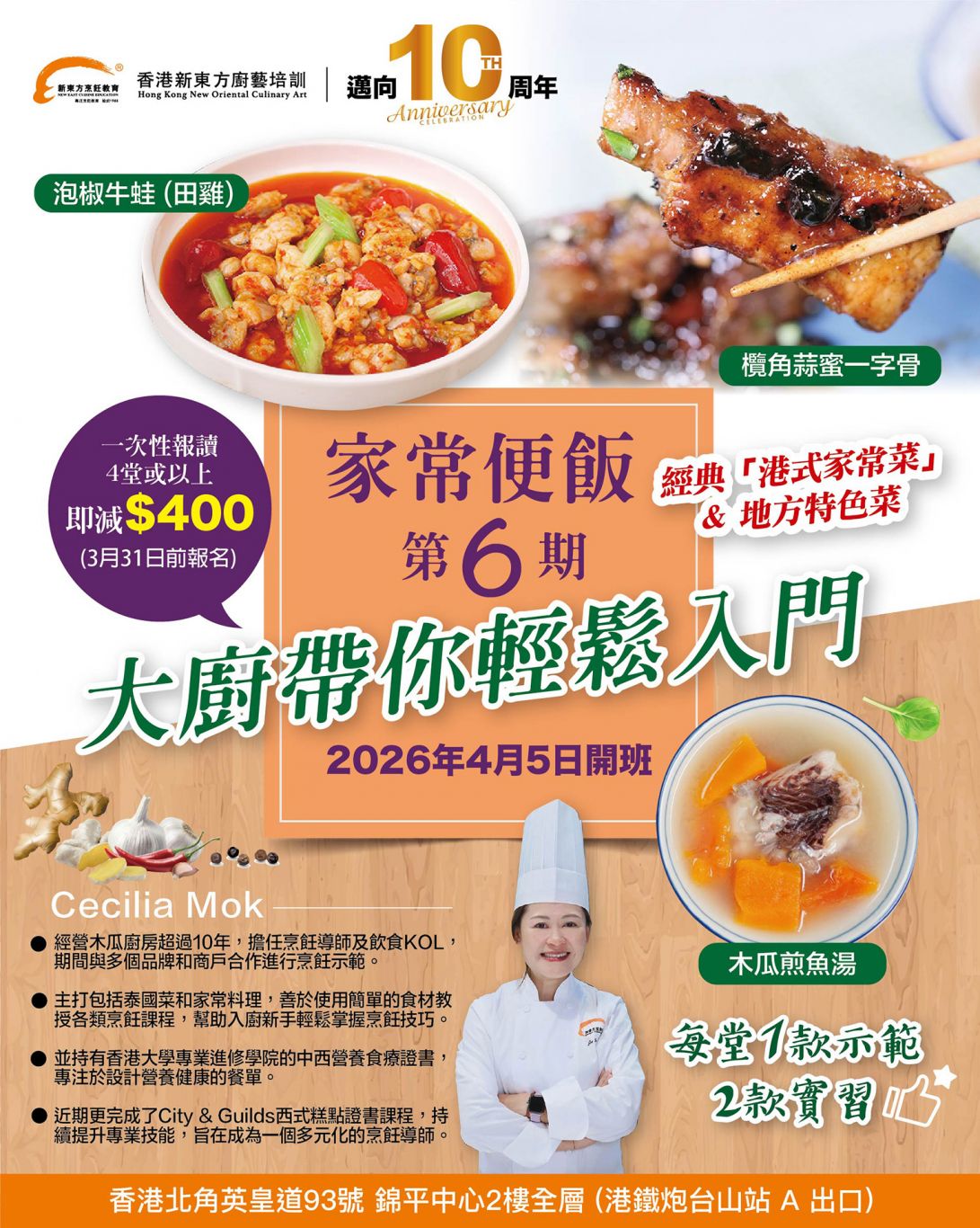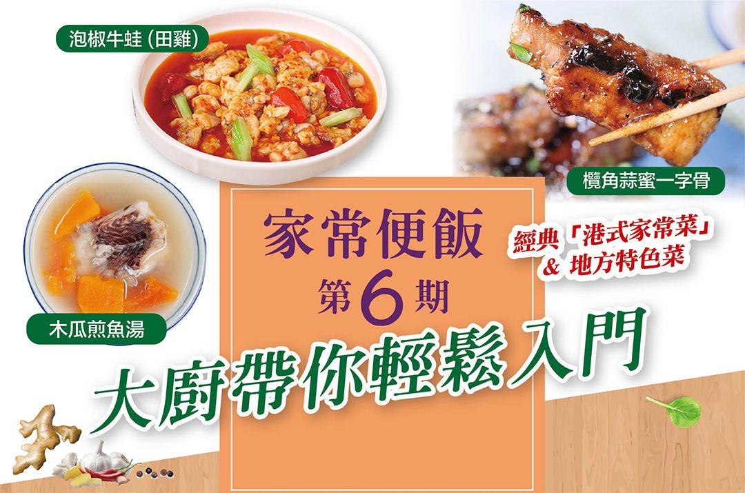 家常菜:(示範)陳皮冬瓜鴨腿湯飯 (實習)梅菜蒸肉餅 (實習)沙嗲牛肉炒菜心