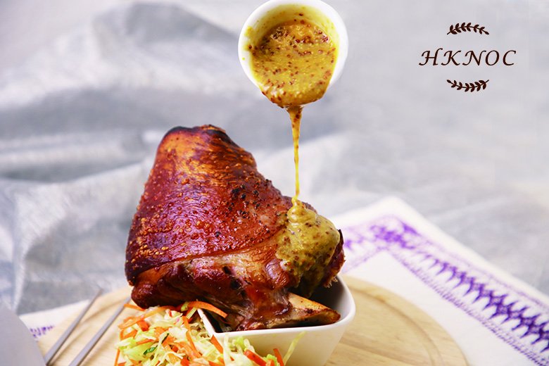 烤鹹豬手配芥末蜜糖汁及椰菜沙律