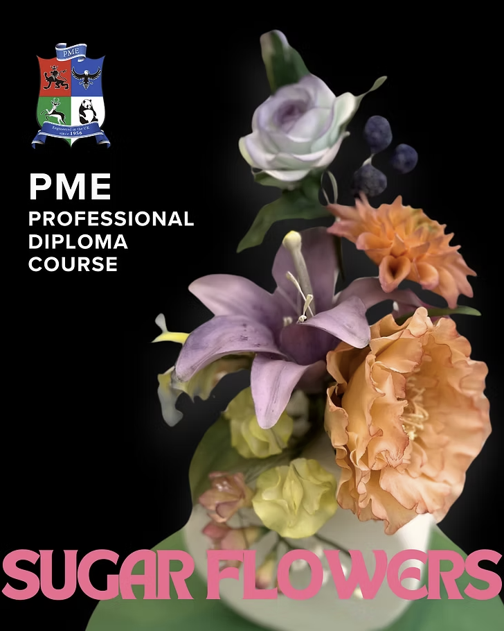 本課程為 PME 官方認可單元,教授多款經典糖花製作,包括牡丹花、庭園玫瑰、大麗花、玫瑰花、百合花、康乃馨、較剪蘭、鈴蘭、加多利亞蘭、豌豆花及葉子。