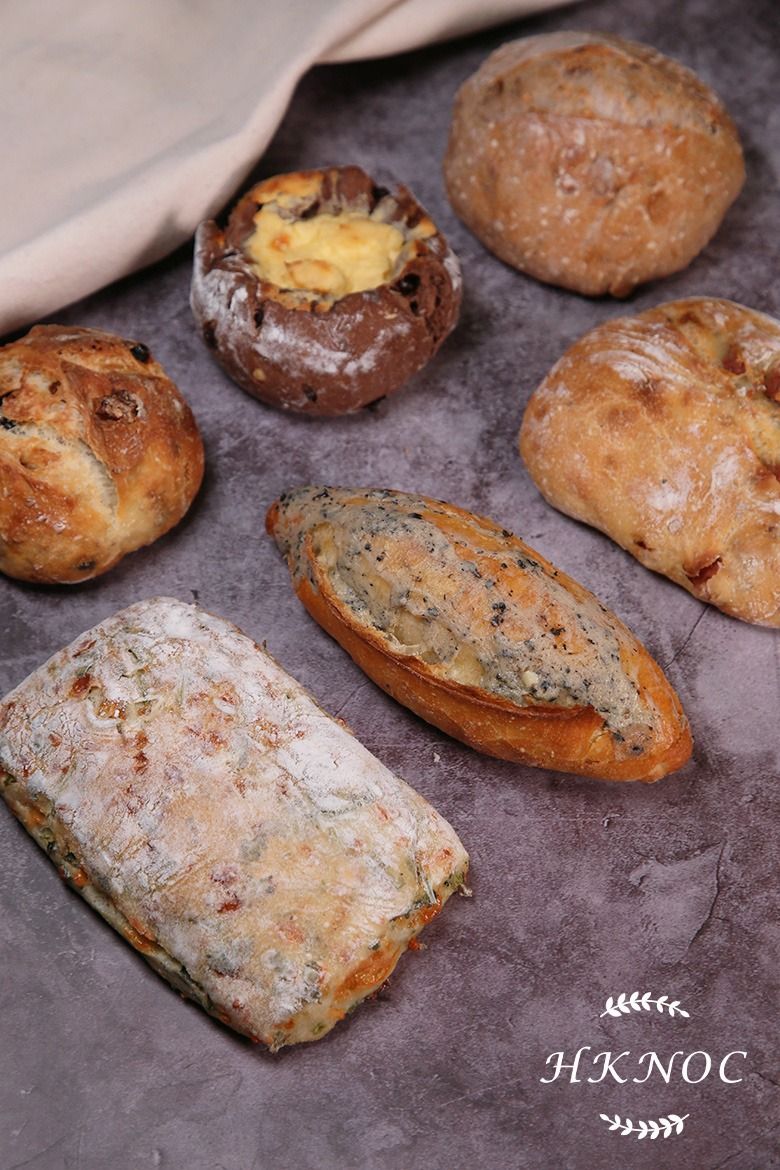 Day1 1.100%水量手揉麵包 X5 2.黑松露法國X3 3.肧笌合桃法國X4 4.芫荽恰巴塔X3 5.香料恰巴塔X3 6朱古力火山熔岩X4 一日整齊6款,款款都是少糖少油產品,外脆內軟,喜歡歐式麵包既你,不容錯過!